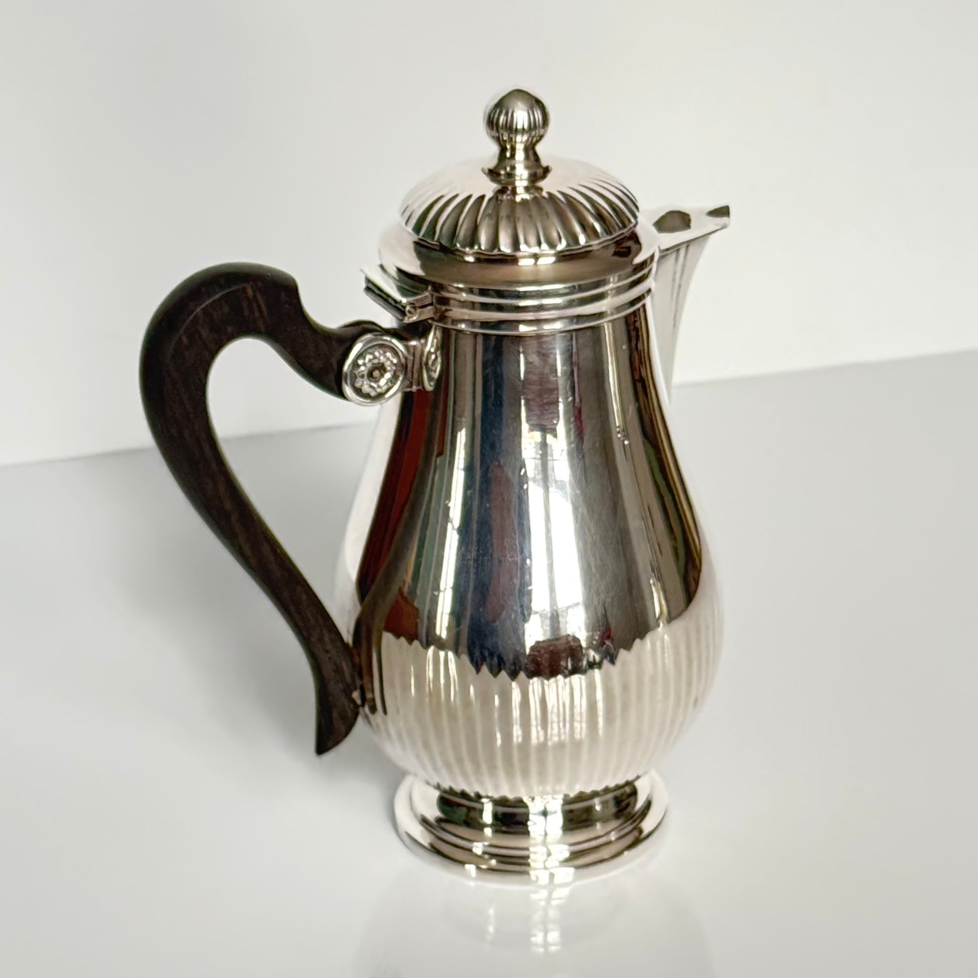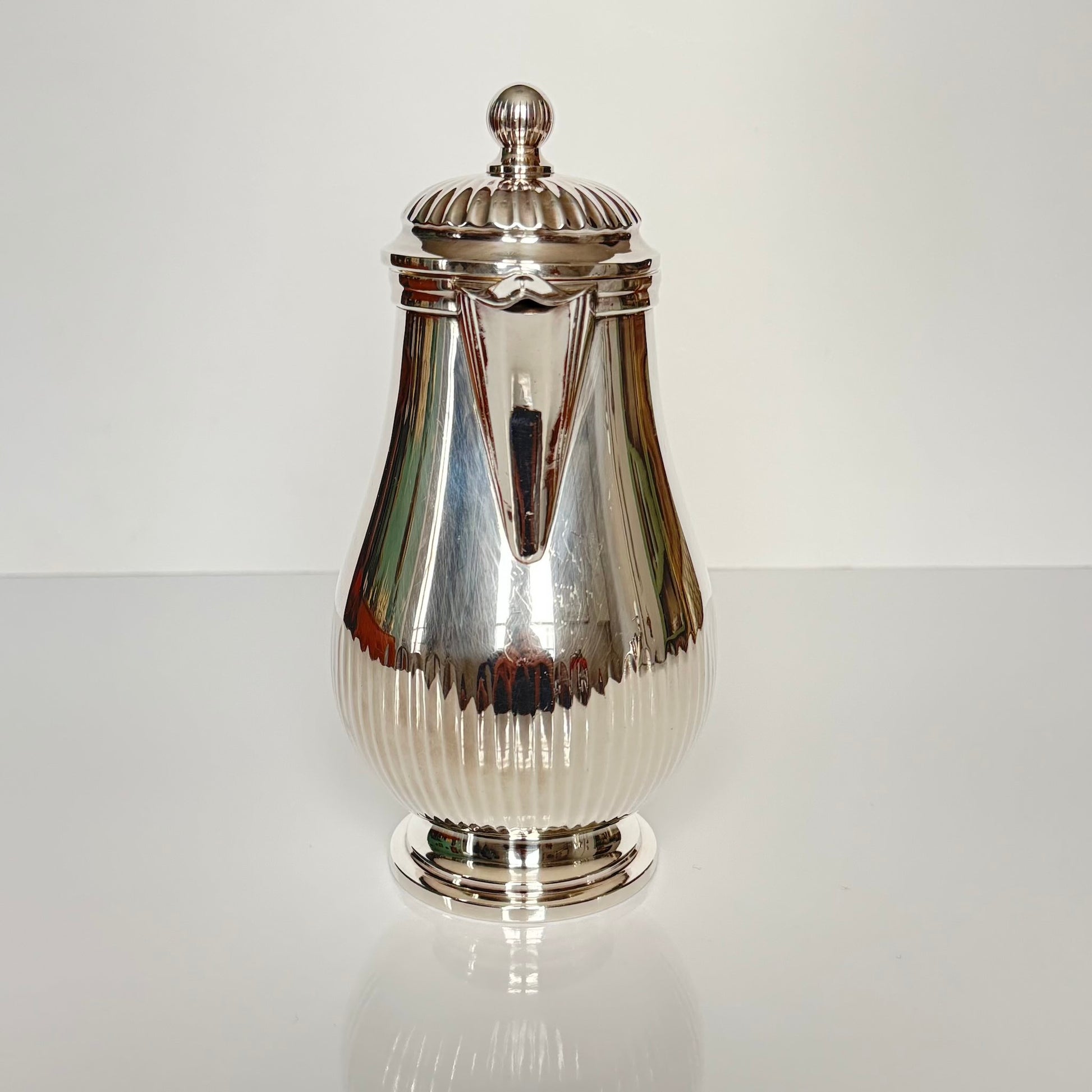 クリストフルのガリアラインによるシルバープレートのコーヒー/ティーポットとクリーマーセット、フランス 1920年代。シンプルながらエレガントなデザインで、クリストフルの卓越したクラフトマンシップを感じられる逸品です。洗練されたティータイムやコレクションに最適。