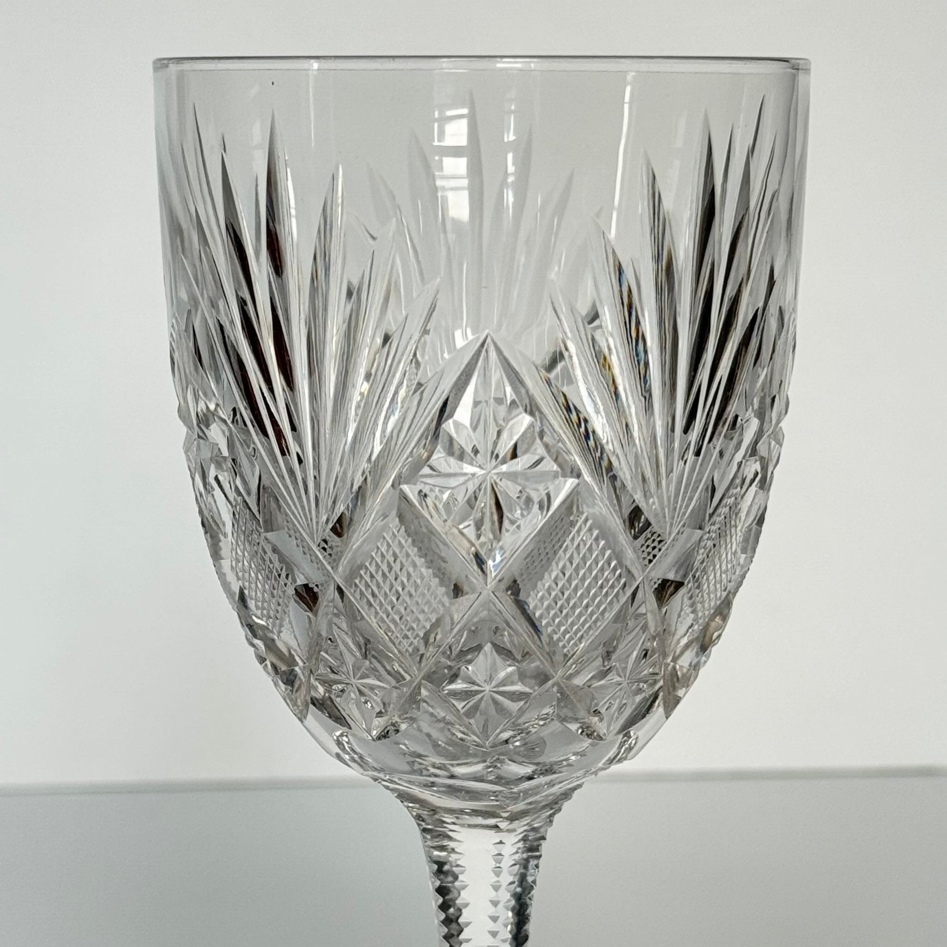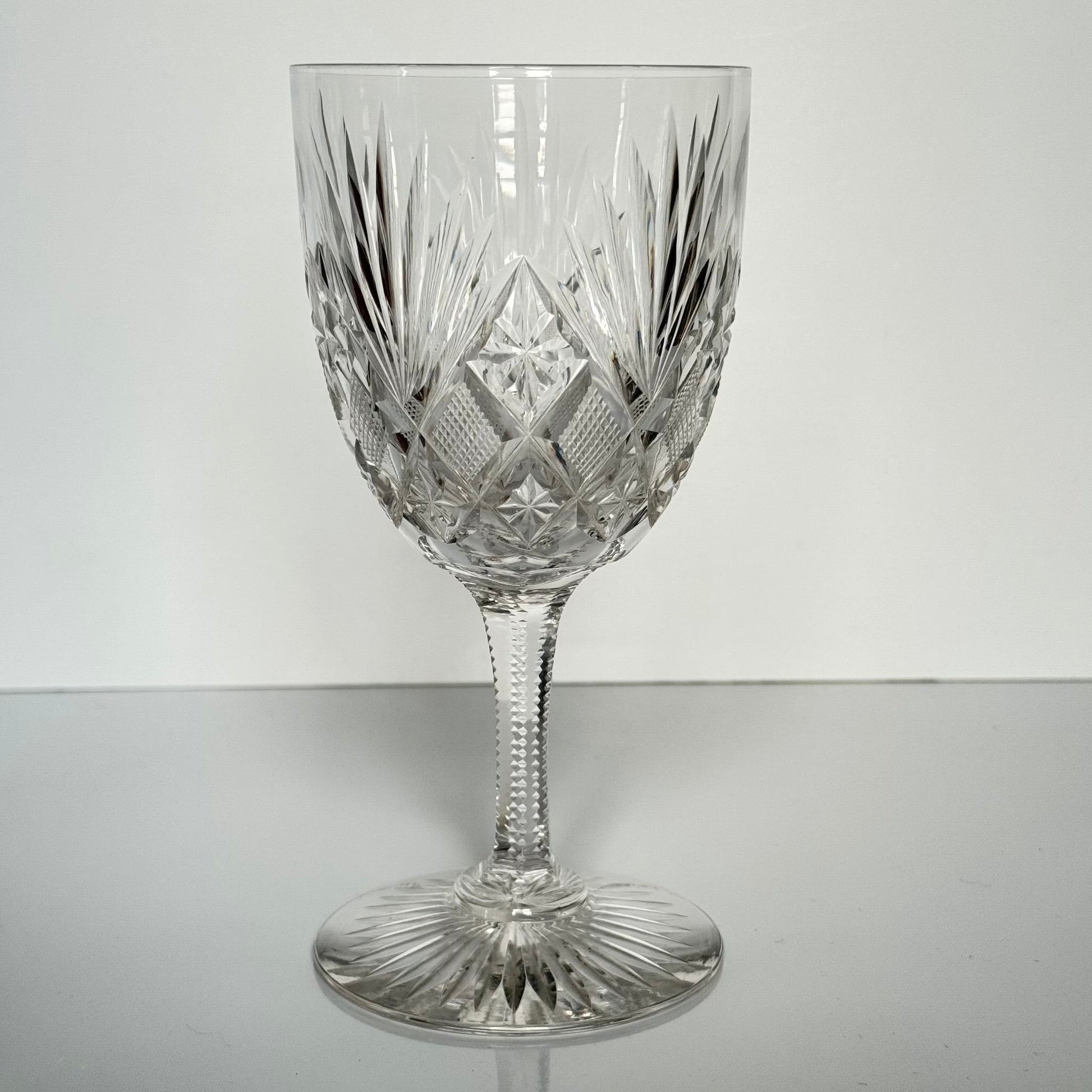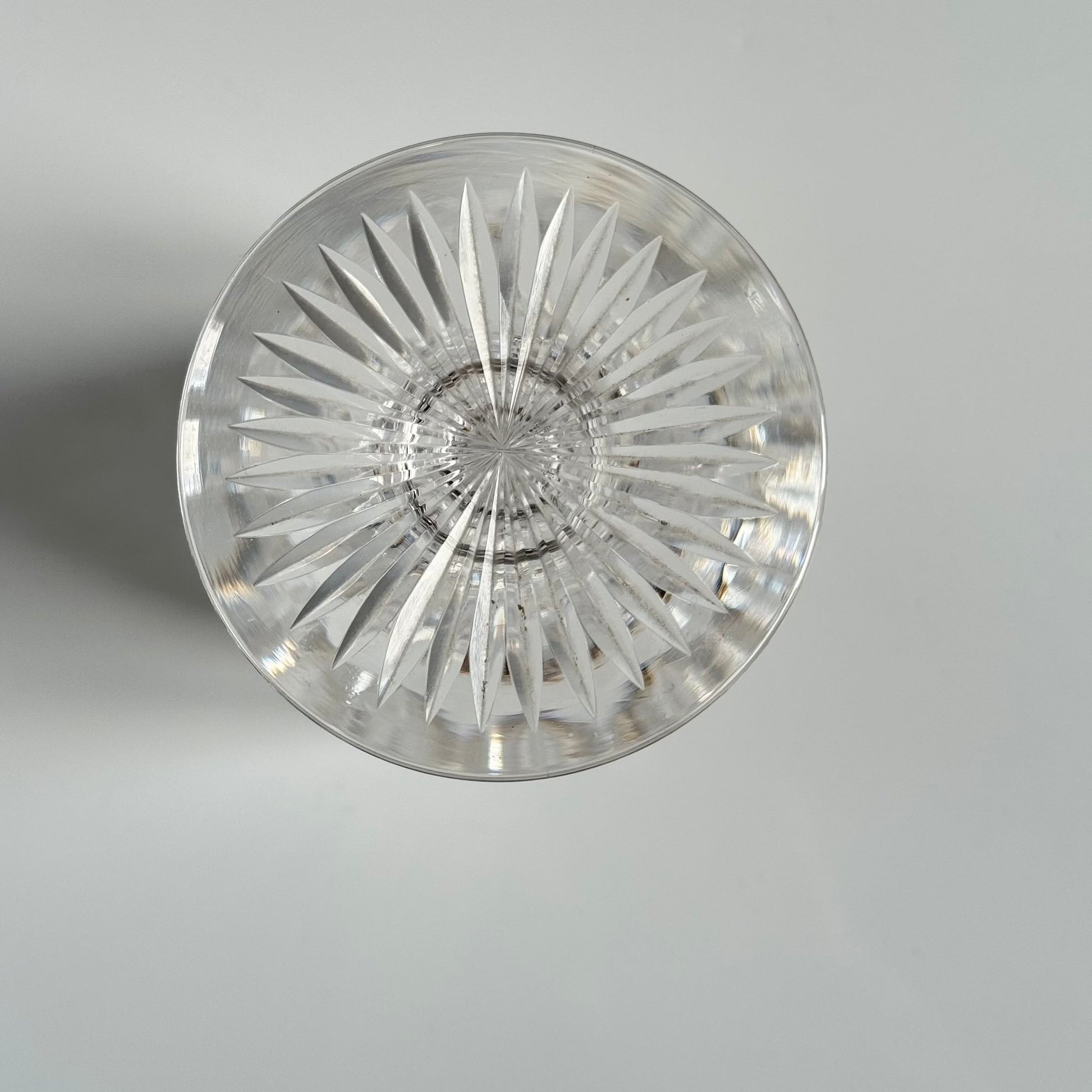 フランスの名門クリスタル工房サンルイによる「ガヴァルニ」モデルの優美なウォーターグラス。20世紀前半に発表されたこの高級モデルは、深く繊細なカット装飾が施され、光を美しく反射します。脚部と底にもカットが施されており、サンルイやバカラにおいて特にハイエンドモデルに用いられる手の込んだ装飾です。
