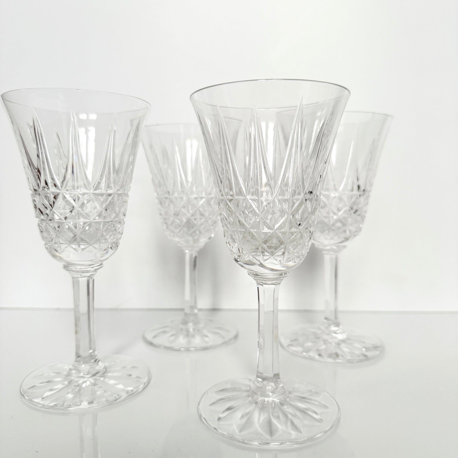 フランスの名門クリスタル工房サンルイによるエレガントなワイングラス。「タルン」パターンは1960年代に制作されたモデルで、深いダイヤモンドカットと軽やかなチューリップ型のフォルムが特徴です。